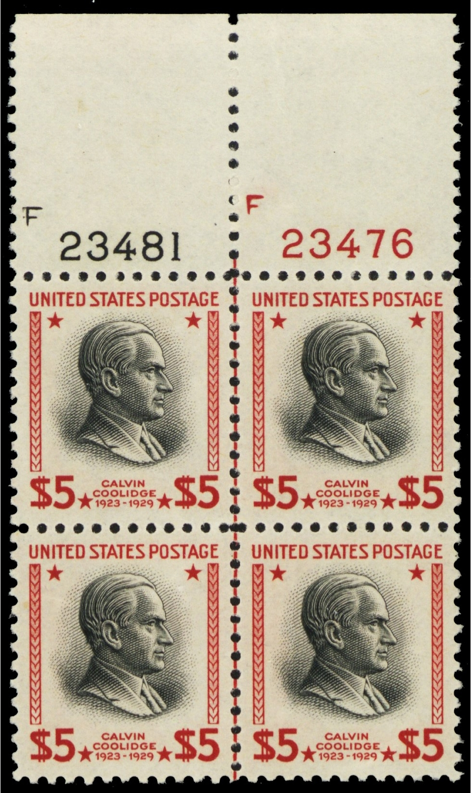 834, Mint NH $5 23481 23476 Plate Block Durland $600 - Stuart Katz