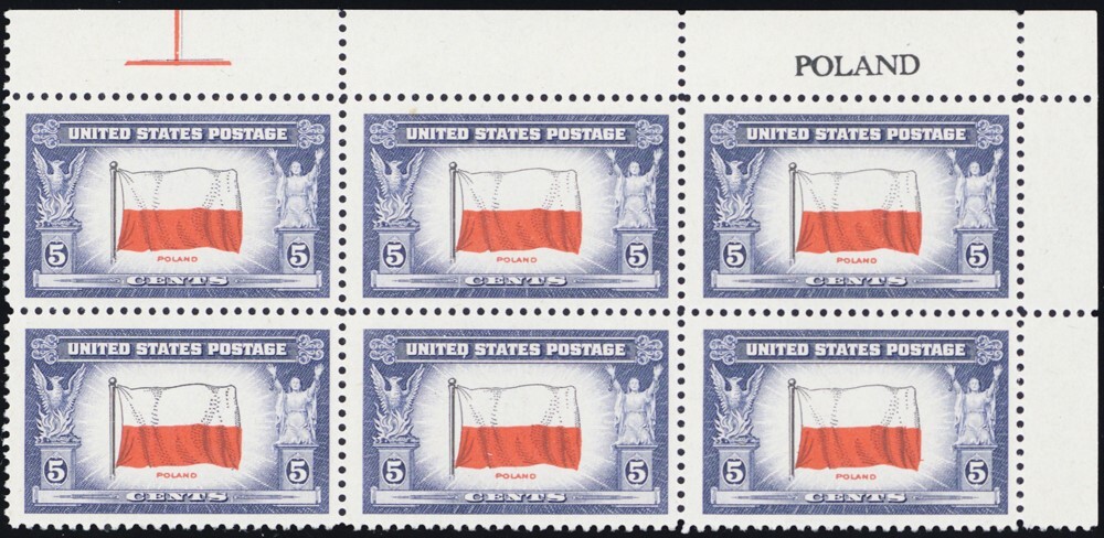 909c, Mint NH REVERSE PRINTING Of Flag Colors Name Block of Six -Stuart Katz