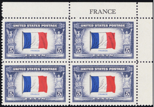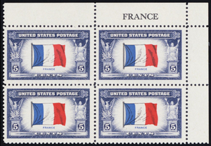 915a, Mint NH REVERSE PRINTING Of Flag Colors Name Block -Stuart Katz