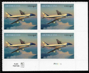 Air Force One $4.60 Priority Mail Plate Block of 4 Postage Stamps Scott 4144