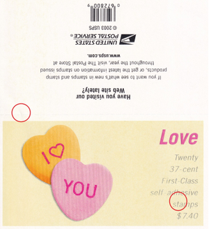 Booklet Pane of 20 stamps - Scott 3833a - 37 cent - Valentine Heart - 2004 - MNH