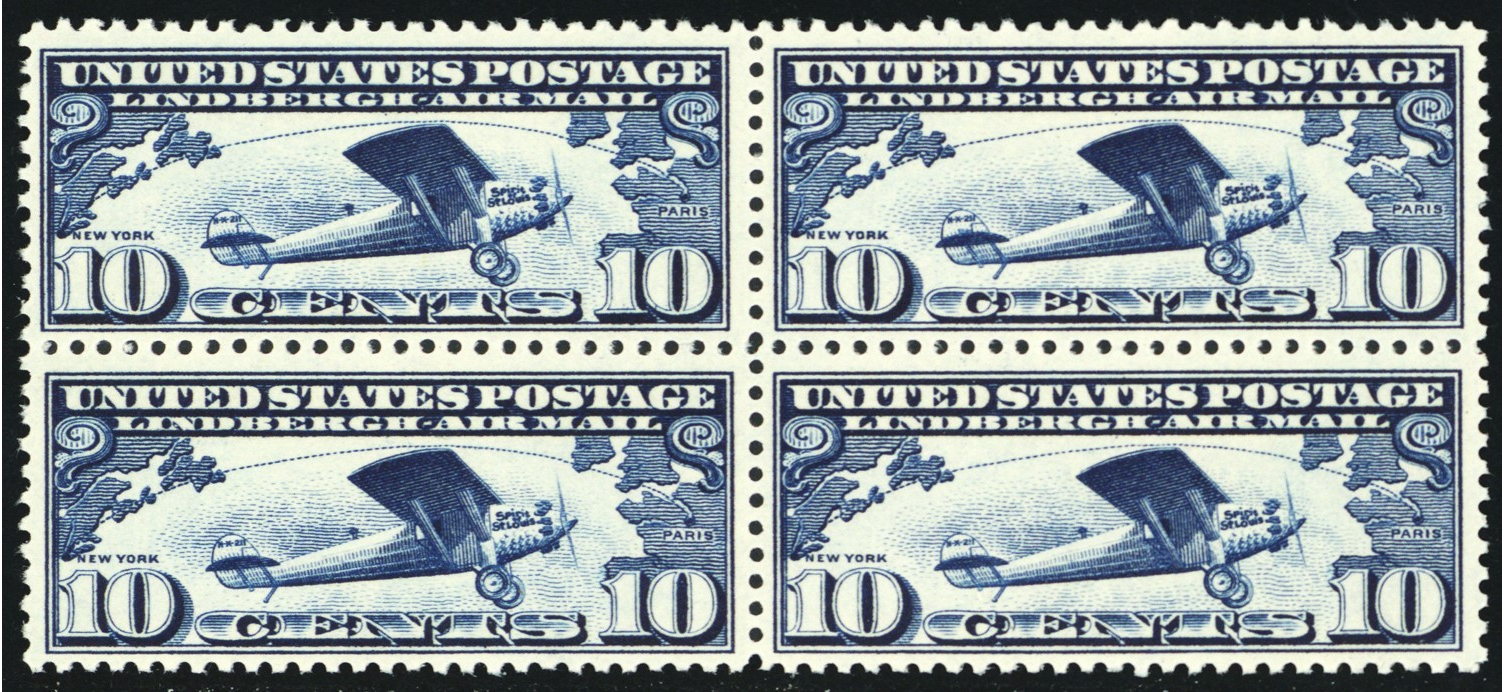C10, Mint NH 10¢ Block of Four Lindbergh Stamps SCV $50 * Stuart Katz