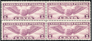 C12, Mint NH 5¢ Block of Four Airmail Stamps SCV $70 - Stuart Katz