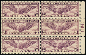 C12, Mint VF NH 5¢ Airmail Plate Block of Six CV $180 - Stuart Katz