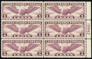C12, Mint XF NH 5¢ Plate Block of Six Stamps ** Stuart Katz