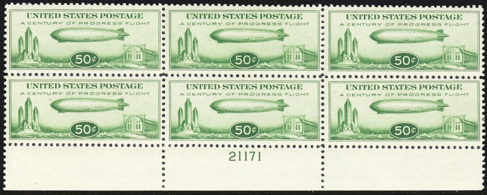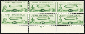 C18, Mint NH 50¢ VF Plate Block of Six Stamps CV $600 - Stuart Katz