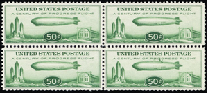 C18, VF/XF NH 50¢ Zepp Airmail Block of Four Stamps Cat $300.00 - Stuart Katz