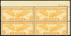 C19, Mint NH FVF 6¢ Airmail Plate Block -- Stuart Katz