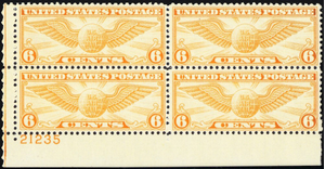 C19, Mint NH VF 6¢ Airmail Plate Block -- Stuart Katz