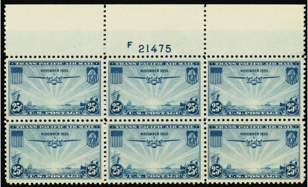 C20, Mint NH VF 25¢ Airmail Top Plate Block * Stuart Katz