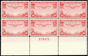 C22, Mint VF NH 50¢ Plate Block of Six Stamps -*- Stuart Katz