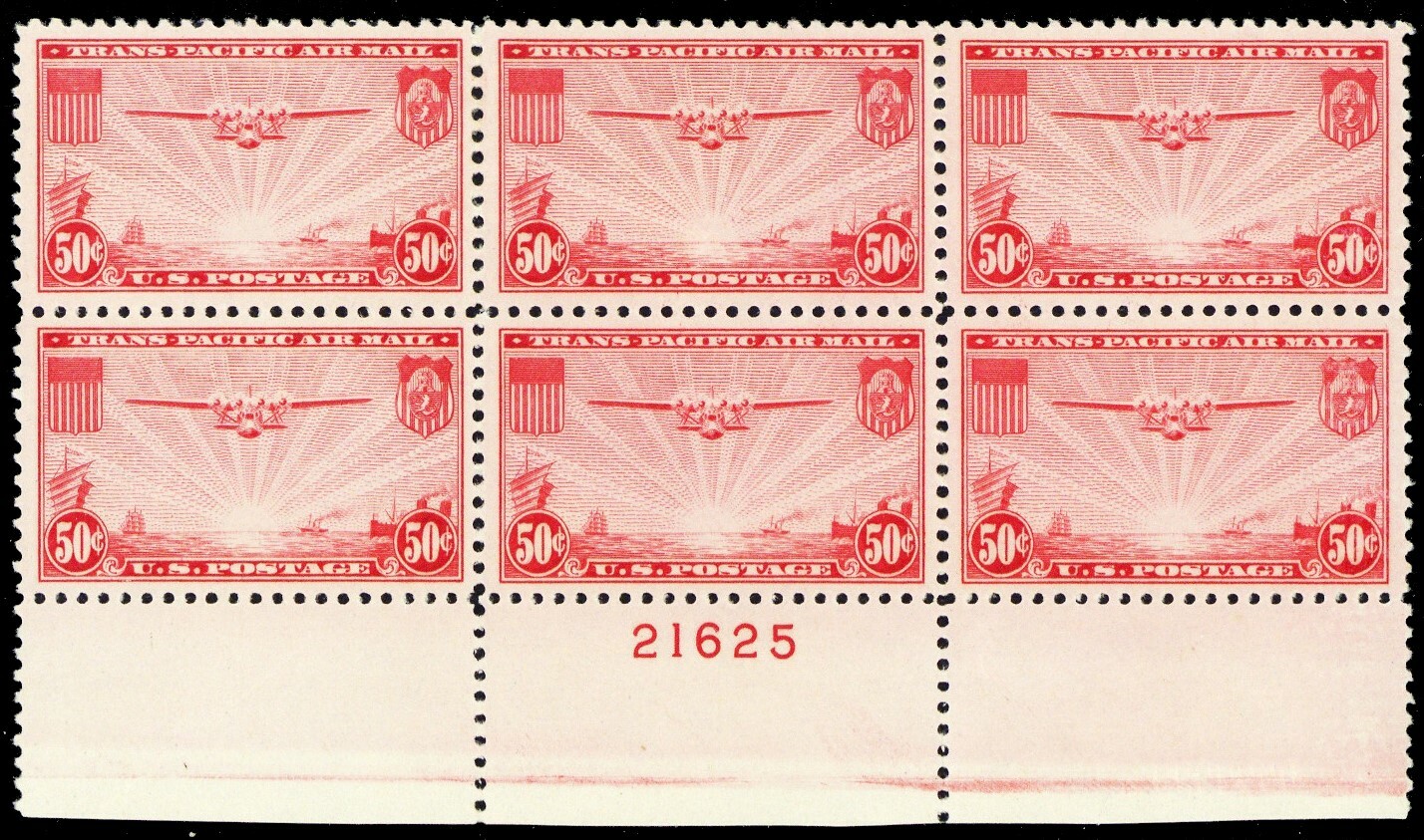 C22, Mint VF NH 50¢ Plate Block of Six Stamps - Stuart Katz