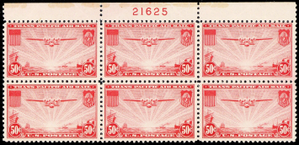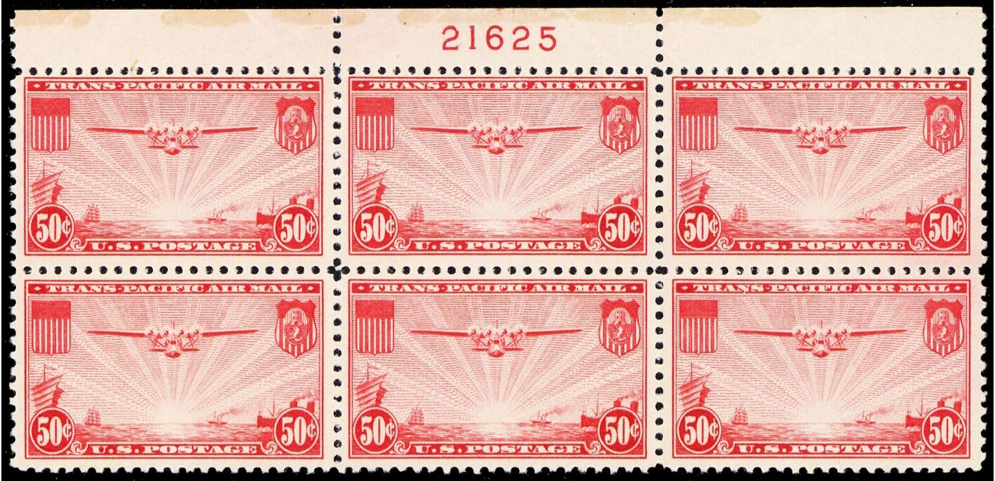C22, Mint VF NH 50¢ Top Plate Block of Six Stamps --*** Stuart Katz