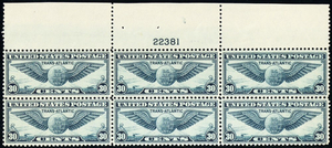 C24, Mint VF NH Plate Block of Six Stamps CV $110 - Stuart Katz
