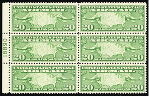 C9, Mint VF NH 20¢ Plate Block of Six - Stuart Katz