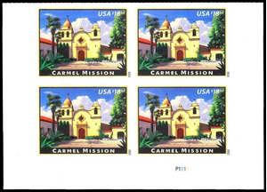 Carmel Mission 18.95 Express Mail Plate Number Block of 4 Stamps Scott 4650