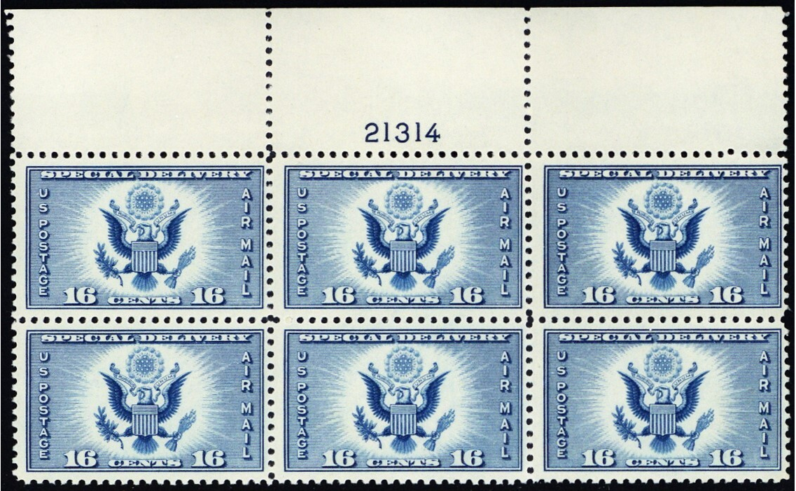 CE1, Mint VF NH 16¢ Top Plate Block of Six Stamps - Stuart Katz