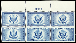 CE1, Mint XF NH 16¢ Top Plate Block of Six Stamps - Stuart Katz