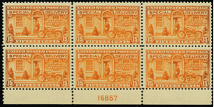 E13, Mint NH 15¢ Plate Block of Six CV $700.00 * Stuart Katz