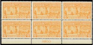 E13, Mint VF NH 15¢ Plate Block of 6 Stamps - Stuart Katz