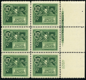 E7, Mint NH (LH in selvage) VF 10¢ - Rare Plate Block OF Six Stamps Stuart Katz