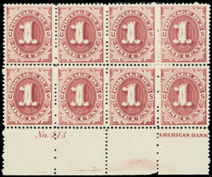 J22, Mint VF HR 1¢ Postage Due Plate Block CV $450 - Stuart Katz