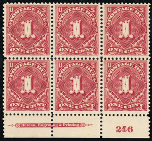J38, Mint XXLH VF RARE 1¢ Plate Block of Six * Stuart Katz