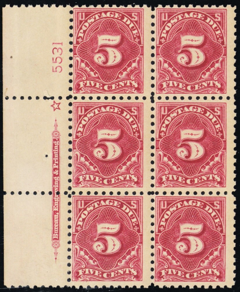 J55, Mint - Stamps NH - 5¢ Plate Block of Six SCV $660 * Stuart Katz