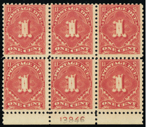 J61, Mint NH 1¢ Scarce Block of Six Stamps CV $100.00 - Stuart Katz