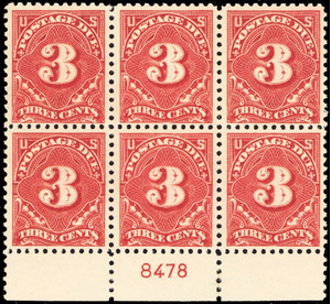 J63 Mint VF-XF NH 3¢ Plate Block of Six Stamps Cat $275.00 - Stuart Katz