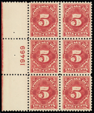 J64, Mint VF NH 5¢ Plate Block of Six SCV $250.00 * Stuart Katz