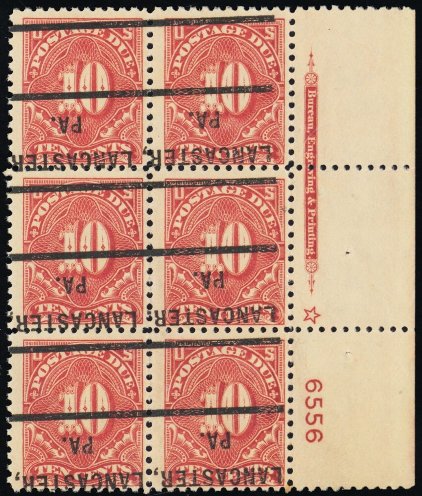J65, RARE Precancel 10¢ Plate Block of Six * Stuart Katz