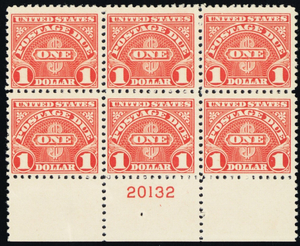 J77, Mint FVF NH $1 Plate Block of Six * Stuart Katz