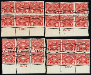 J78, Used $5 Plate Blocks of ALL 4 Plate #'s RARE! - Stuart Katz