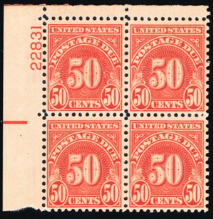 J86a, Mint VF NH 50¢ Plate Block of Four - Stuart Katz