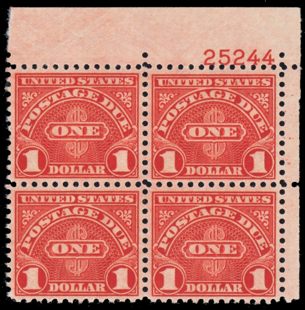 J87, Mint VF NH $1 Plate Block of 4 Postage Due Stamps - Stuart Katz