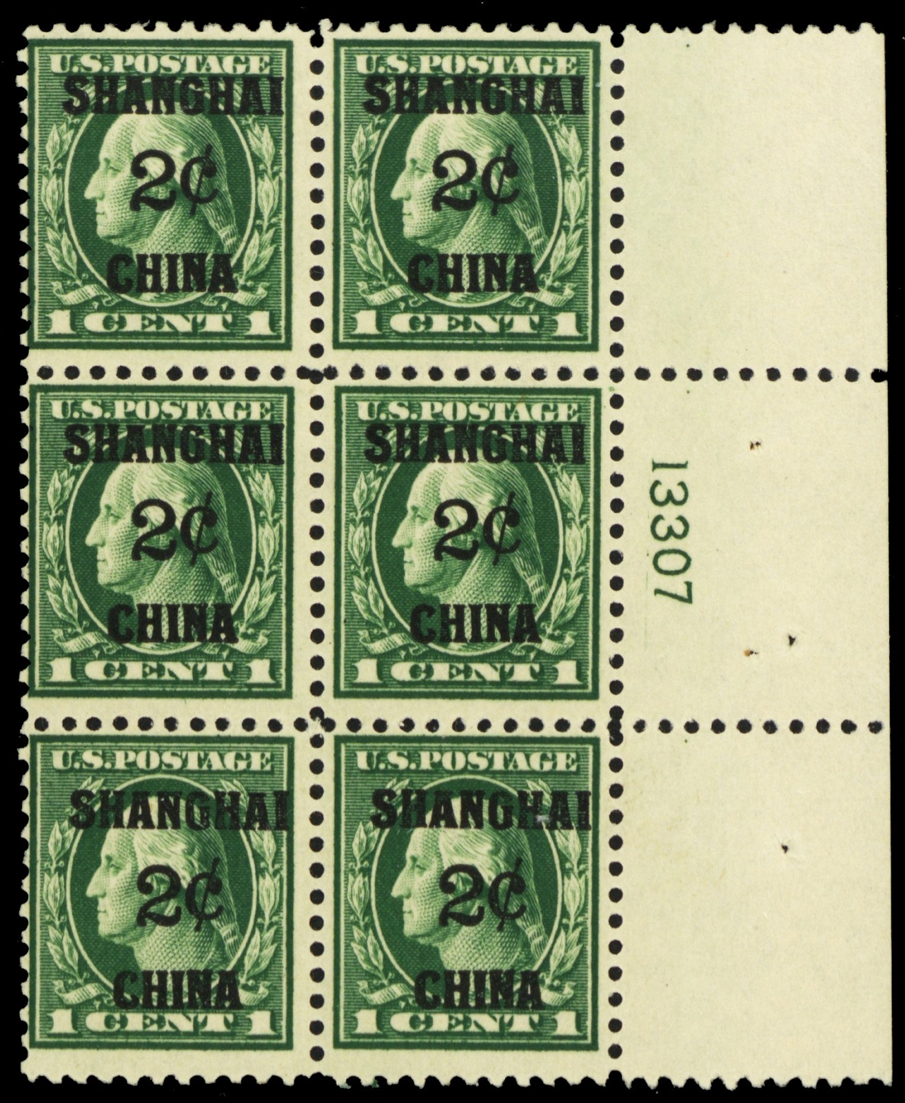 K1, Mint LH 2¢ Shanghai Scarce Plate Block of Six - Stuart Katz
