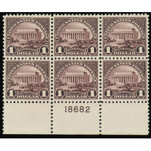 571, Mint VF NH $1 Plate Block of Six Stamps Cat $525.00 - Stuart Katz