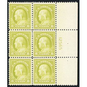 484, Mint Superb NH 3¢ Plate Block of Six Stamps - Stuart Katz
