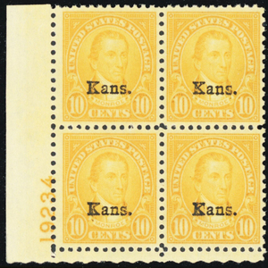 668, Mint VF NH 10¢ - Kansas Plate Block PSE Certificate - Stuart Katz