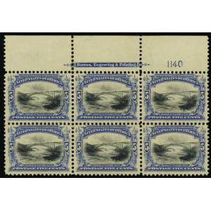 326, Mint NH VF 5¢ - Very Rare Plate Block OF Six Stamps - Stuart Katz