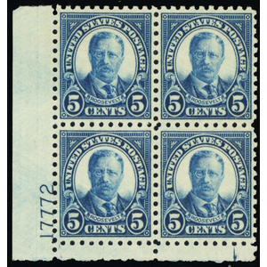 686, Mint XF VLH 5¢ Plate Block of Four - Stuart Katz