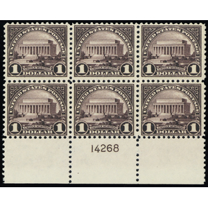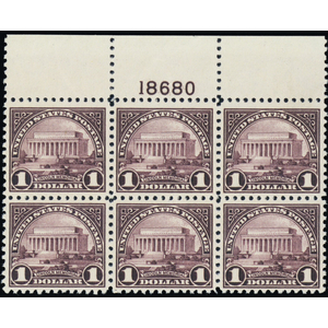 571, Mint VF NH $1 Top Plate Block Of Six Stamps - Stuart Katz