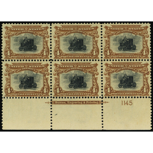 296, Mint VF LH 4¢ Plate Block of Six Solid Plate! SCV $2750 - Stuart Katz