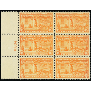 E7, Mint NH (LH in selvage) VF 10¢ - Rare Plate Block OF Six Stamps Stuart Katz