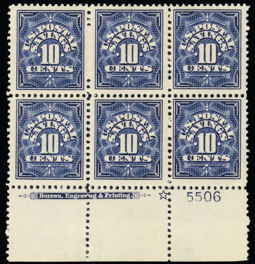 PS4, Mint VF 5 (NH) 1 (H) 10¢ Plate Block of Six SCV $200.00 * Stuart Katz