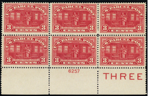 Q3, Mint (1 stamp hr) 3¢ Plate Block of Six SCV $250.00 * Stuart Katz
