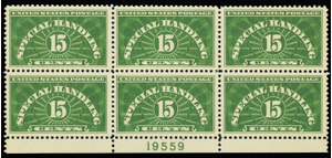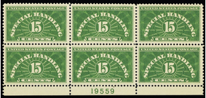 QE1a, Mint VF NH 15¢ Plate Block of Six SCV $47.50 * Stuart Katz
