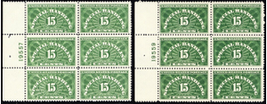 QE2, Mint VF NH Wet & Dry 15¢ Plate Blocks of Six SCV $182.50 * Stuart Katz