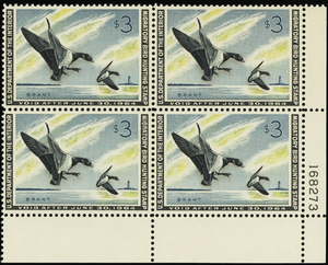 RW30, Mint XF NH $3 Duck Plate Block of Four Stamps Cat $450.00 - Stuart Katz